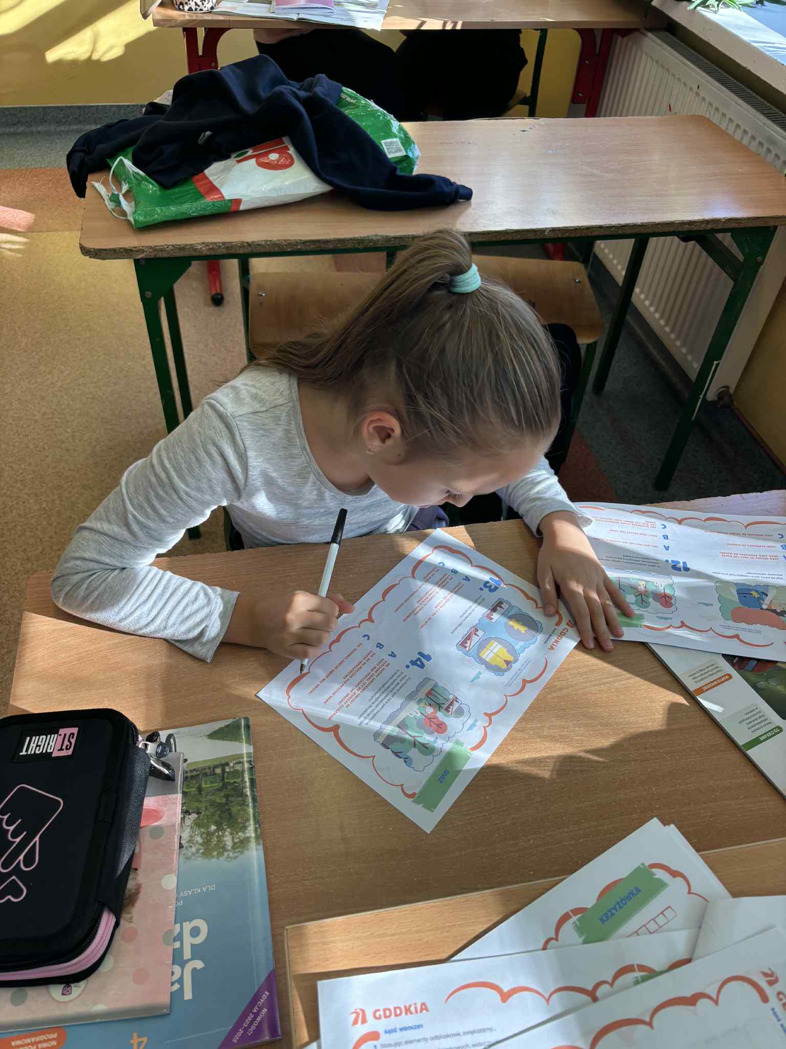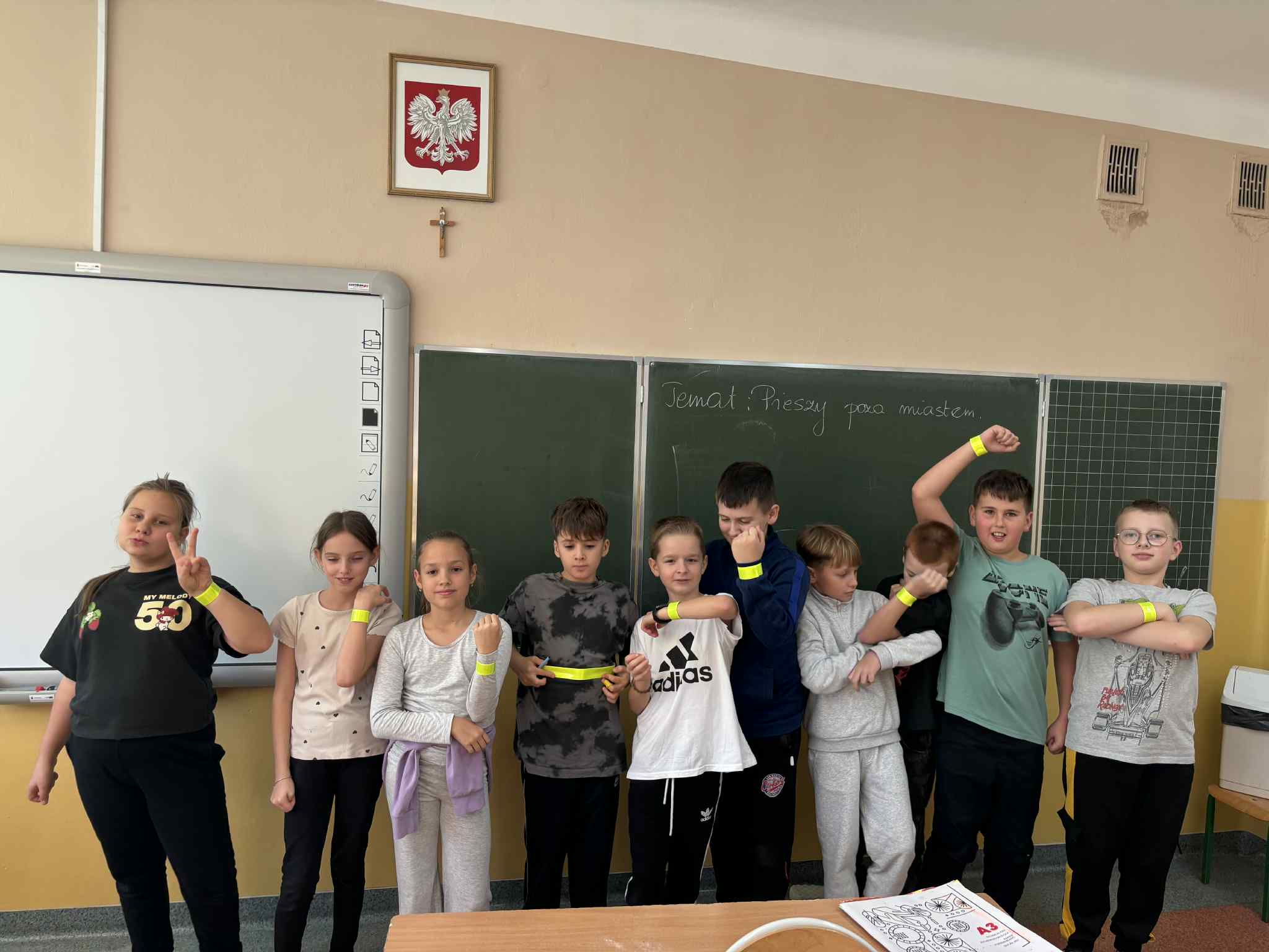 W mijającym tygodniu uczniowie klas I – IV uczestniczyli w zajęciach o tematyce bezpieczeństwa pieszych. Dzieci obejrzały film edukacyjny o podstawowych zasadach bezpieczeństwa w ruchu drogowym, a następnie sprawdziły swoją wiedzę rozwiązując krzyżówkę i quiz. Na zakończenie zajęć dzieci kolorowały ilustracje przedstawiające właściwe zachowania na drodze, a także otrzymały kamizelki i elementy odblaskowe, które pomogą im być lepiej widocznymi po zmroku.