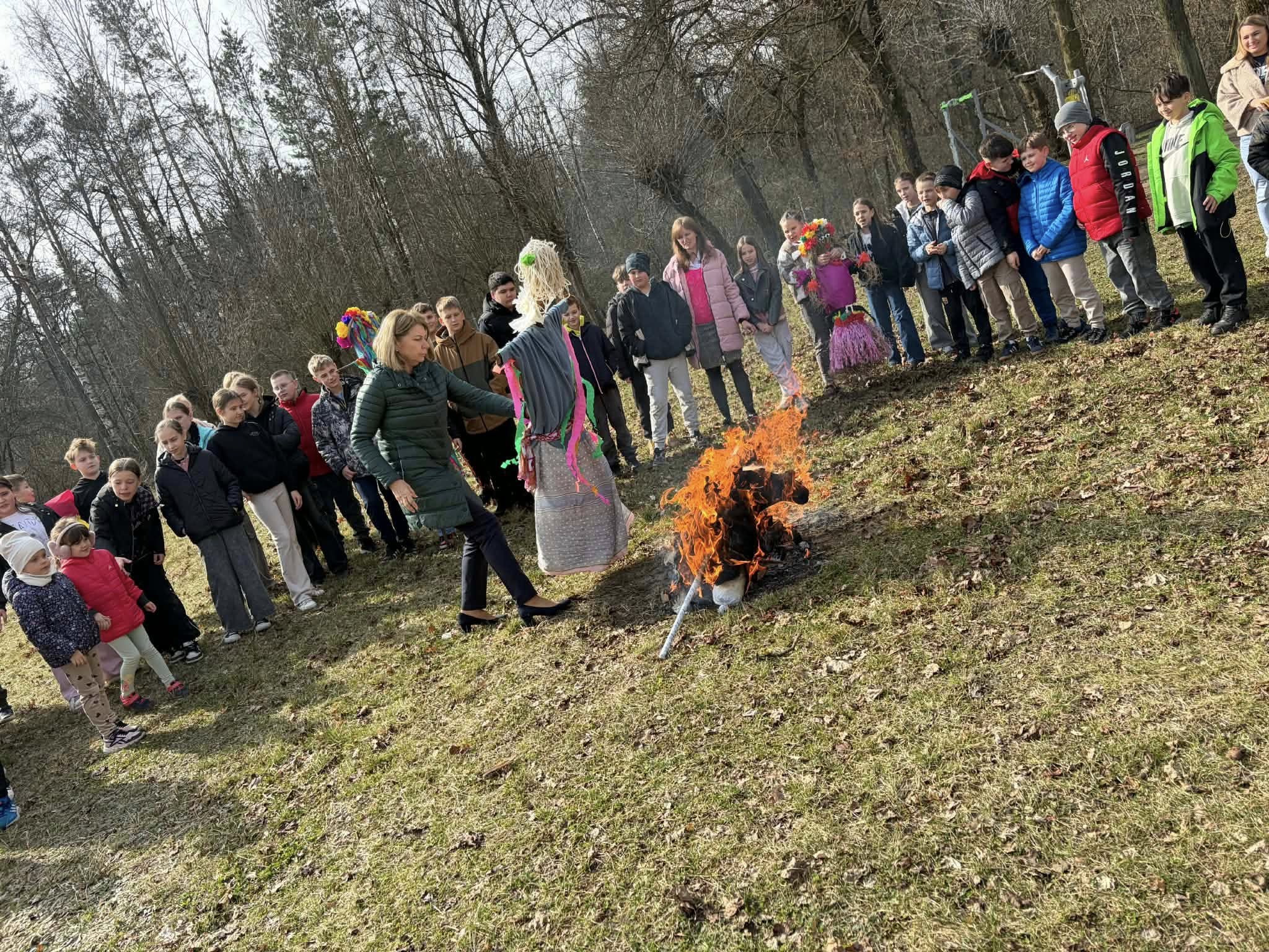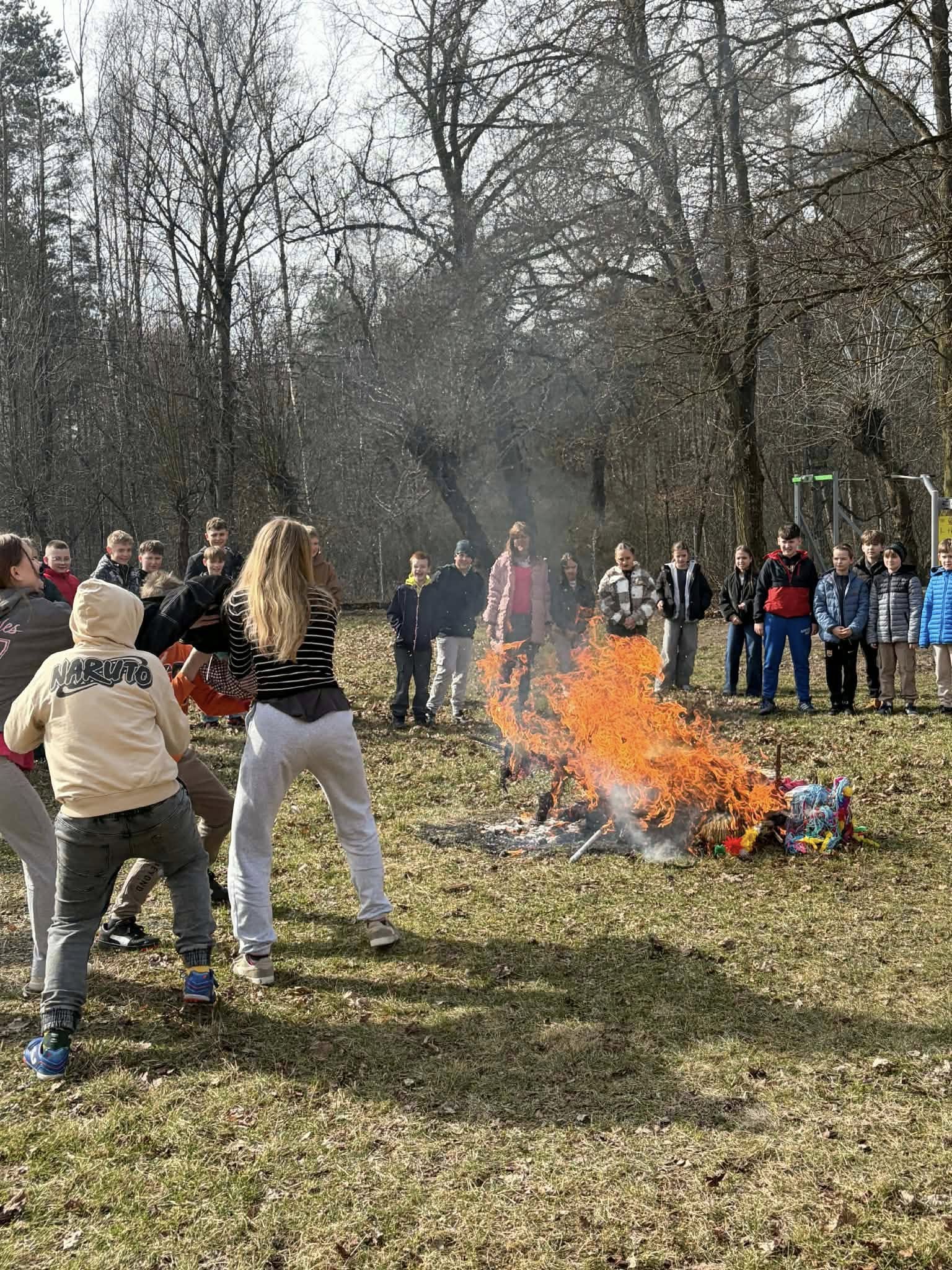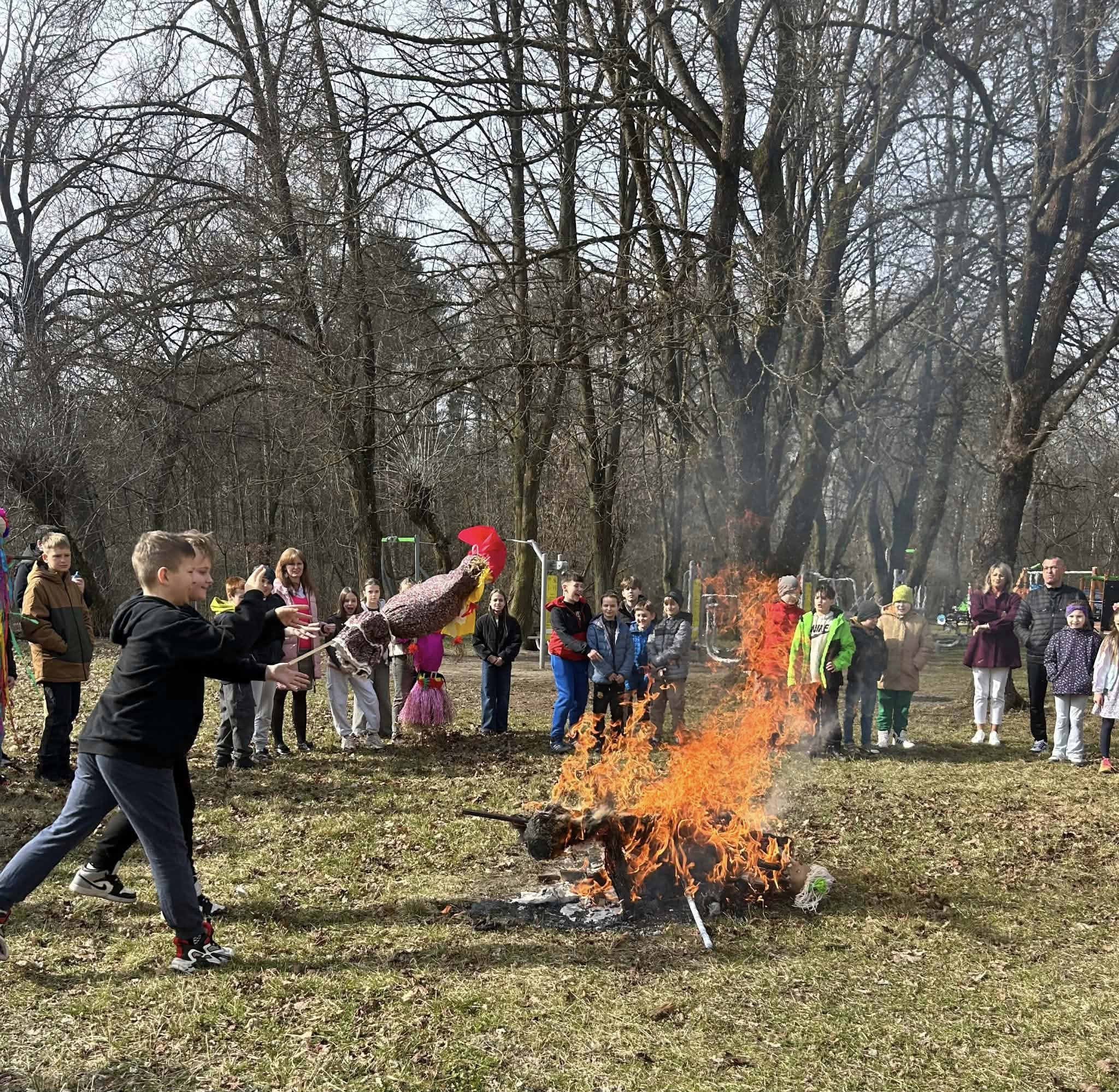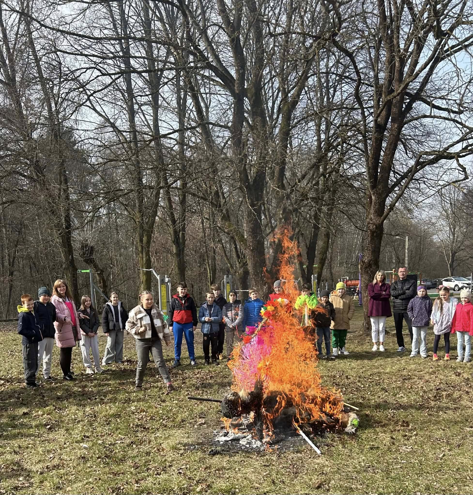 Pierwszy Dzień Wiosny w naszej szkole upłynął w radosnej i wyjątkowej atmosferze. Każda klasa przygotowała własną Marzannę, którą następnie wspólnie spaliliśmy podczas ogniska, symbolicznie żegnając zimę i witając wiosnę. Po wspólnym świętowaniu uczniowie wraz z wychowawcami udali się na pyszny obiad w postaci pizzy. To był dzień pełen uśmiechu, integracji i dobrej zabawy! 🌸🔥🍕