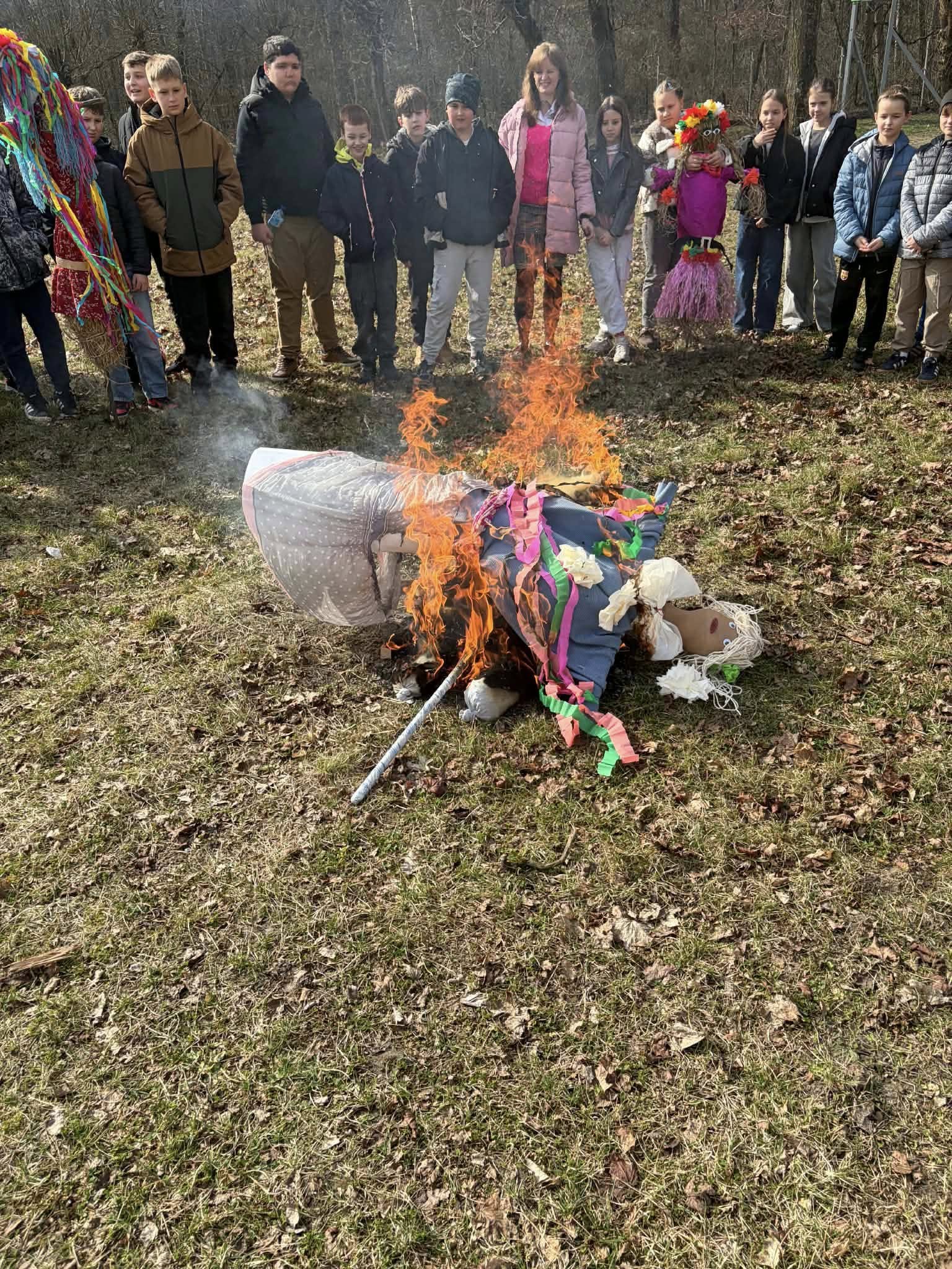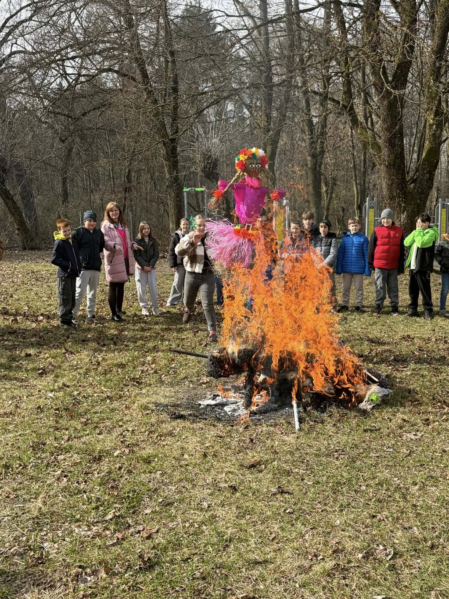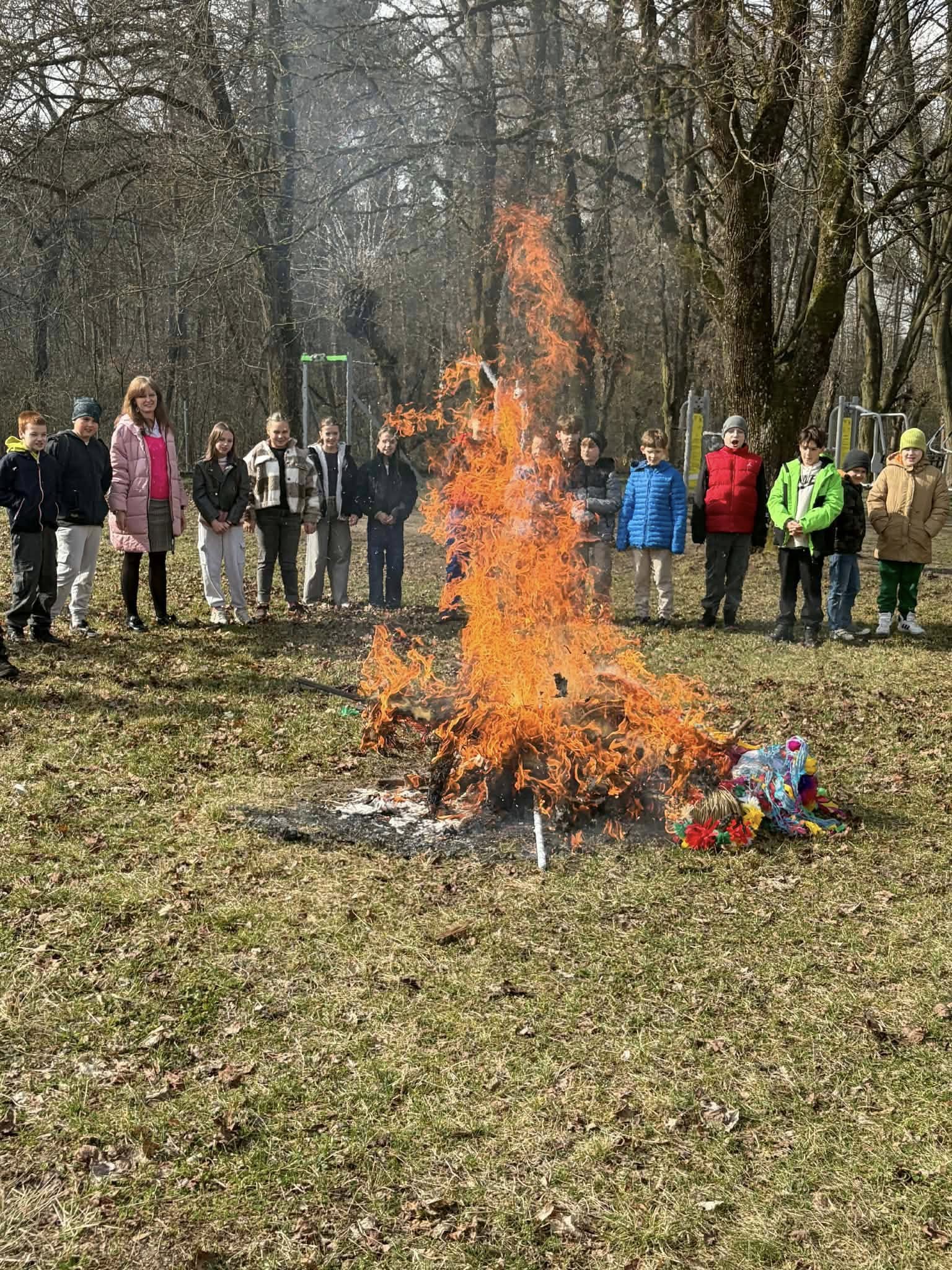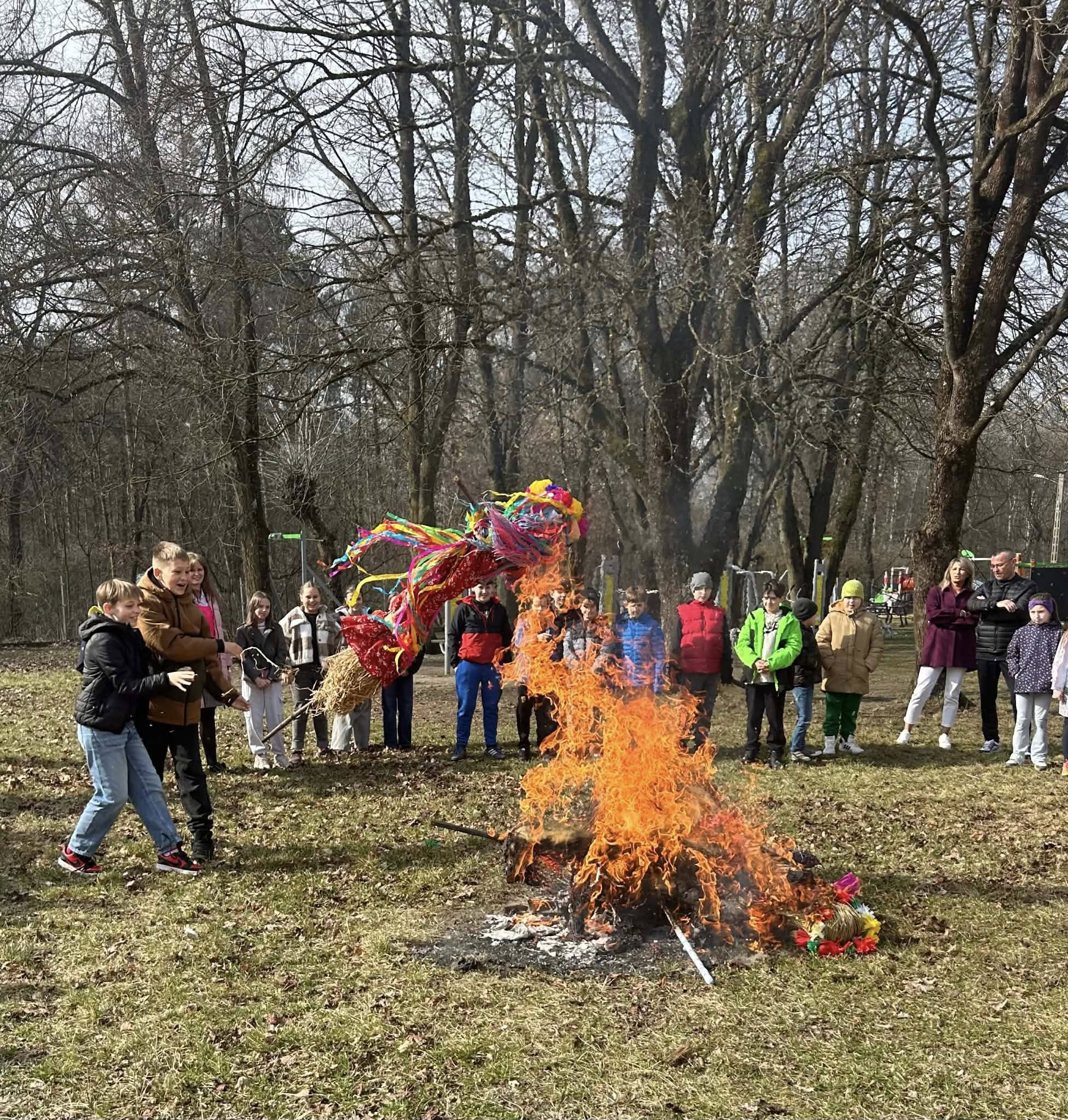 Pierwszy Dzień Wiosny w naszej szkole upłynął w radosnej i wyjątkowej atmosferze. Każda klasa przygotowała własną Marzannę, którą następnie wspólnie spaliliśmy podczas ogniska, symbolicznie żegnając zimę i witając wiosnę. Po wspólnym świętowaniu uczniowie wraz z wychowawcami udali się na pyszny obiad w postaci pizzy. To był dzień pełen uśmiechu, integracji i dobrej zabawy! 🌸🔥🍕